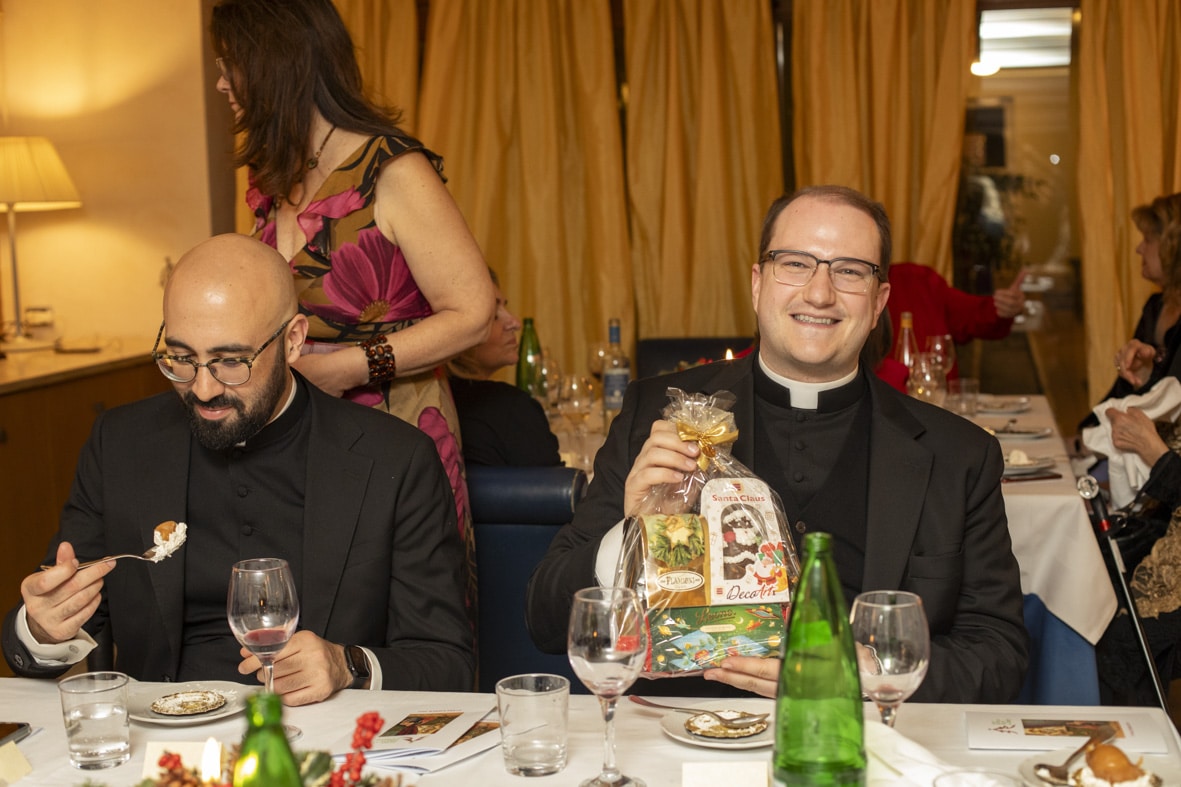 The 2025 St. Nicholas Serata for Charity was Friday night, December 5. It was a wonderful night of community spirit and success in raising funds for our specific charitable projects. Thank you, thank you, thank you to everyone who made this year’s Serata such a Grand Success!! Thank you to everyone at the Circolo Canottieri Aniene, all of our generous donors, and to our faithful, creative and hard-working Serata Organizing Committee: Margarret Bissett, Sara D’Aietti, Camilla Finocchi D’Ayala Valva, Claudia Frasca, Isabellla Gasparutti, Carolina Gualtieri, Joan Lewis, and Teresa Pascarelli with the invaluable help and guidance from Fr. Matthew Berrios and Fr. Greg Apparcel. Thank you for all that you have done to make this happen!! Year end and year out!!!